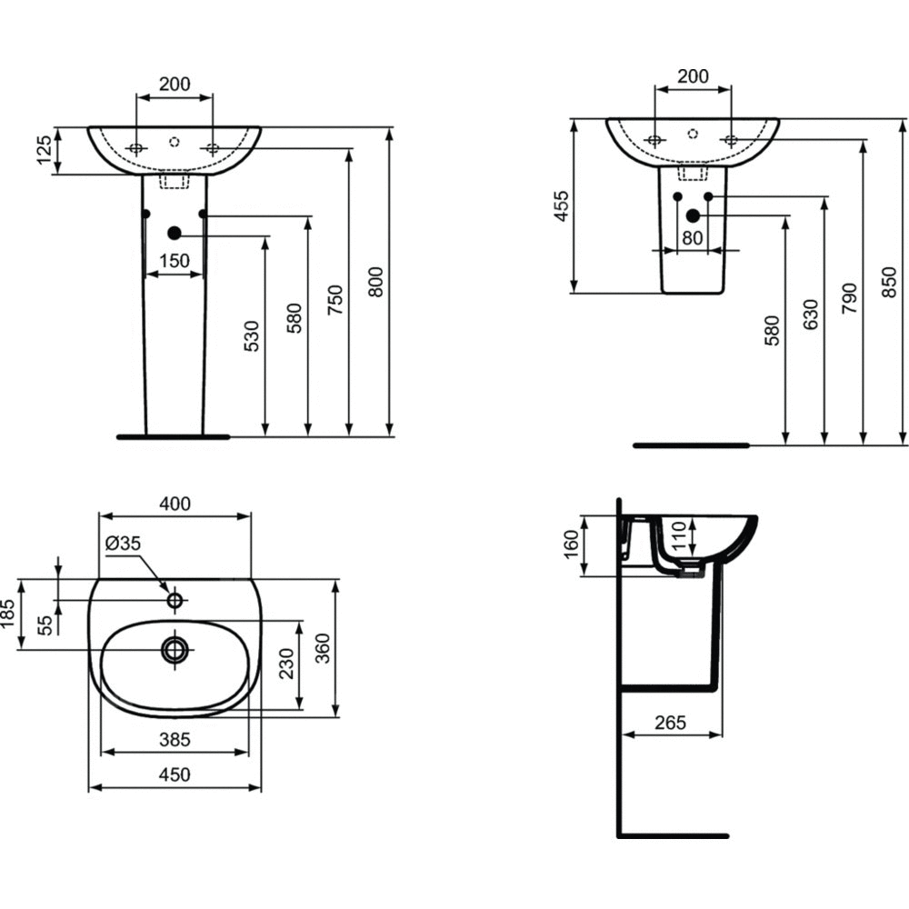 1 otwór na baterię wybity centralnie. W kartonowym opakowaniu. PL-EN 14688. Do montażu z: małym postumentem T352101, małym półpostumentem T352001 lub samodzielnie z syfonem. Rekomendowane wyposażenie: - mały postument (T352101). mały półpostument (T352001). zestaw montażowy M8 x 90 mm (K714467). syfon G1 1/4 - typ rurowy (A2305AA). zawór kątowy (przyłącze wodne G1/2, przyłącze z mieszaczem 10 mm/G3/8) - 1 szt. (B7883AA). rozeta do syfonu G1 1/4 (w przypadku montażu z baterią z korkiem automatycznym) (B4801AA).