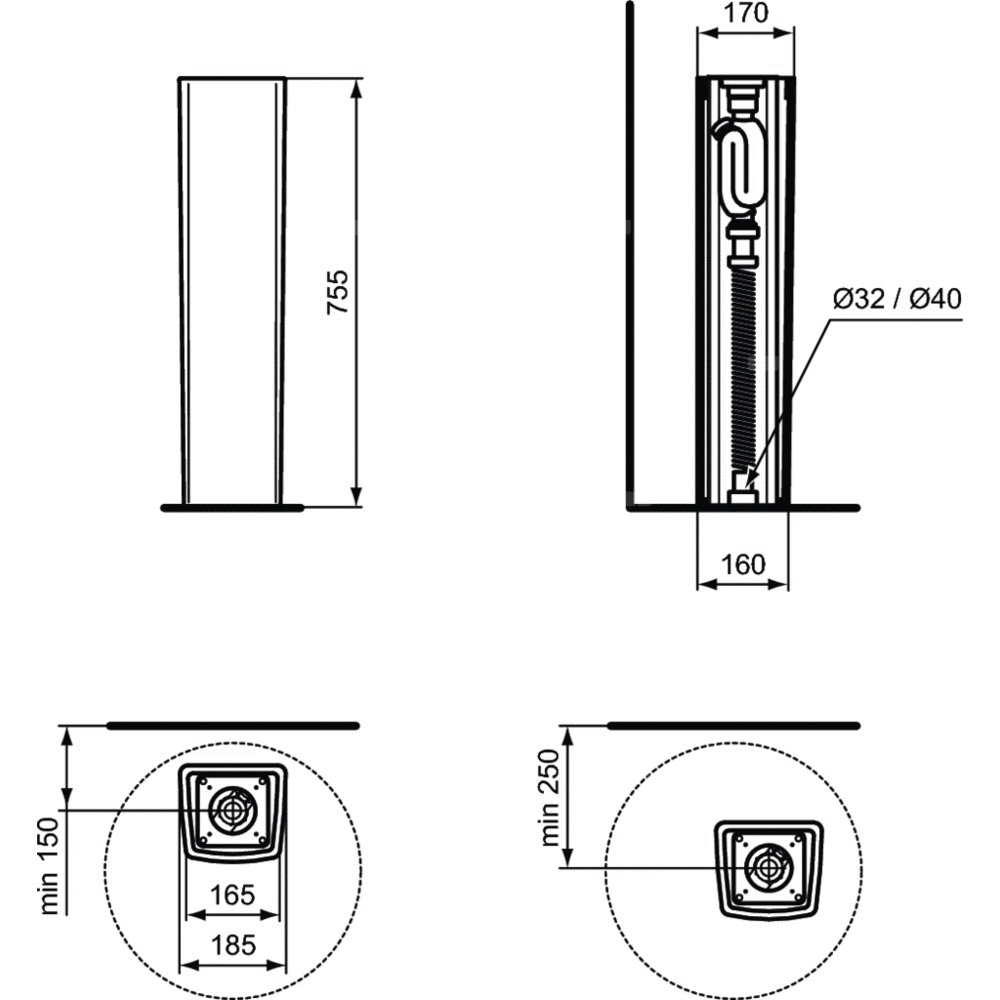 Postument do montażu wolnostojącego okrągłej umywalki nablatowej. Specjalna wewnętrzna metalowa struktura do montażu okrągłej umywalki nablatowej z rurą oraz syfonem.
