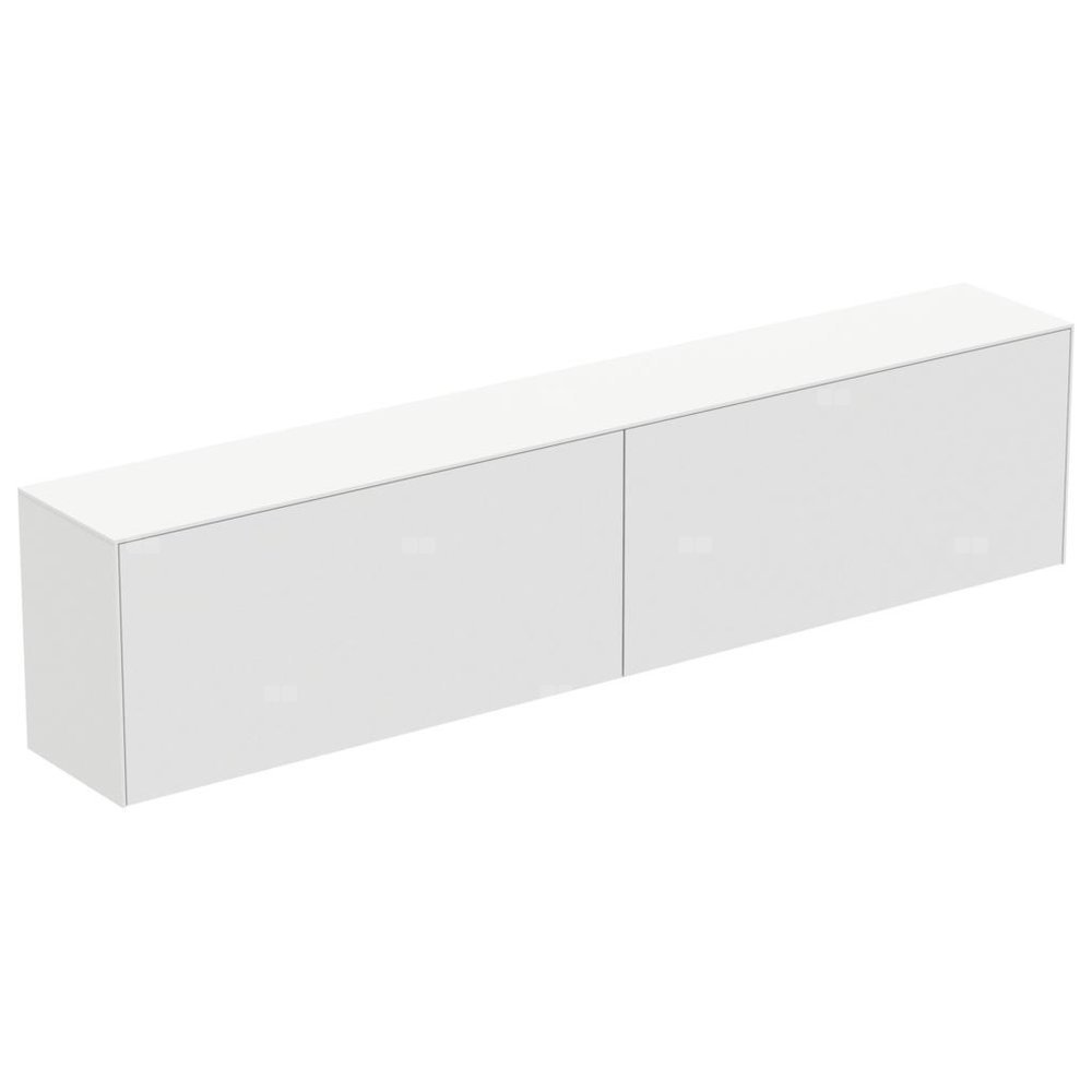 Z 2 zewnętrznymi i 2 wewnętrznymi szufladami z funkcjami push to open i samodomykania "soft close". Wykończenie wewnętrzne szafek w kolorze antracytowym. Do samodzielnego montażu lub kompletowania z następującymi umywalkami 40-120 cm: Conca wisząca (szlifowana od spodu), umywalki Conca z powierzchniami bocznymi, umywalkami Extra wiszącymi, umywalkami nablatowymi Extra oraz umywalkami nablatowymi Ipalyss. Rekomendowane wyposażenie: syfon oszczędzający przestrzeń EE23033967 - do zamówienia osobno. Do wycięcia przy użyciu szablonu dołączonego do umywalek (bez możliwości cięcia na blacie).