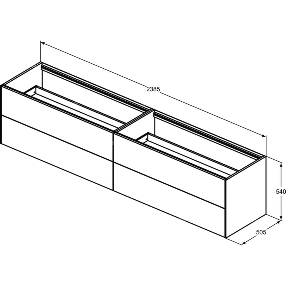 Z 2 zewnętrznymi i 2 wewnętrznymi szufladami z funkcjami push to open i samodomykania "soft close". Wykończenie wewnętrzne szafek w kolorze antracytowym, pasujące do koloru szuflad. Do kompletowania z blatem ceramicznym 240 cm T4343. Blat ceramiczny (bez otworu/z otworem na zamówienie) zamawiany oddzielnie pod wymiar wybranej umywalki. Rekomendowane wyposażenie: syfon oszczędzający przestrzeń EE23033967 - dostępny w osobnym zamówieniu.