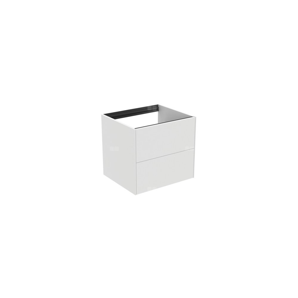 Szafka pod umywalkę z 2 zewnętrznymi szufladami do kompletowania z blatem ceramicznym 60 cm T3969. Blat ceramiczny (bez otworu/z otworem na zamówienie) zamawiany oddzielnie pod wymiar wybranej umywalki. Szuflady z funkcjami Push to open i wolnym zamykaniem. Wykończenie wewnętrzne szafek w kolorze antracytowym, pasujące do koloru szuflad.
