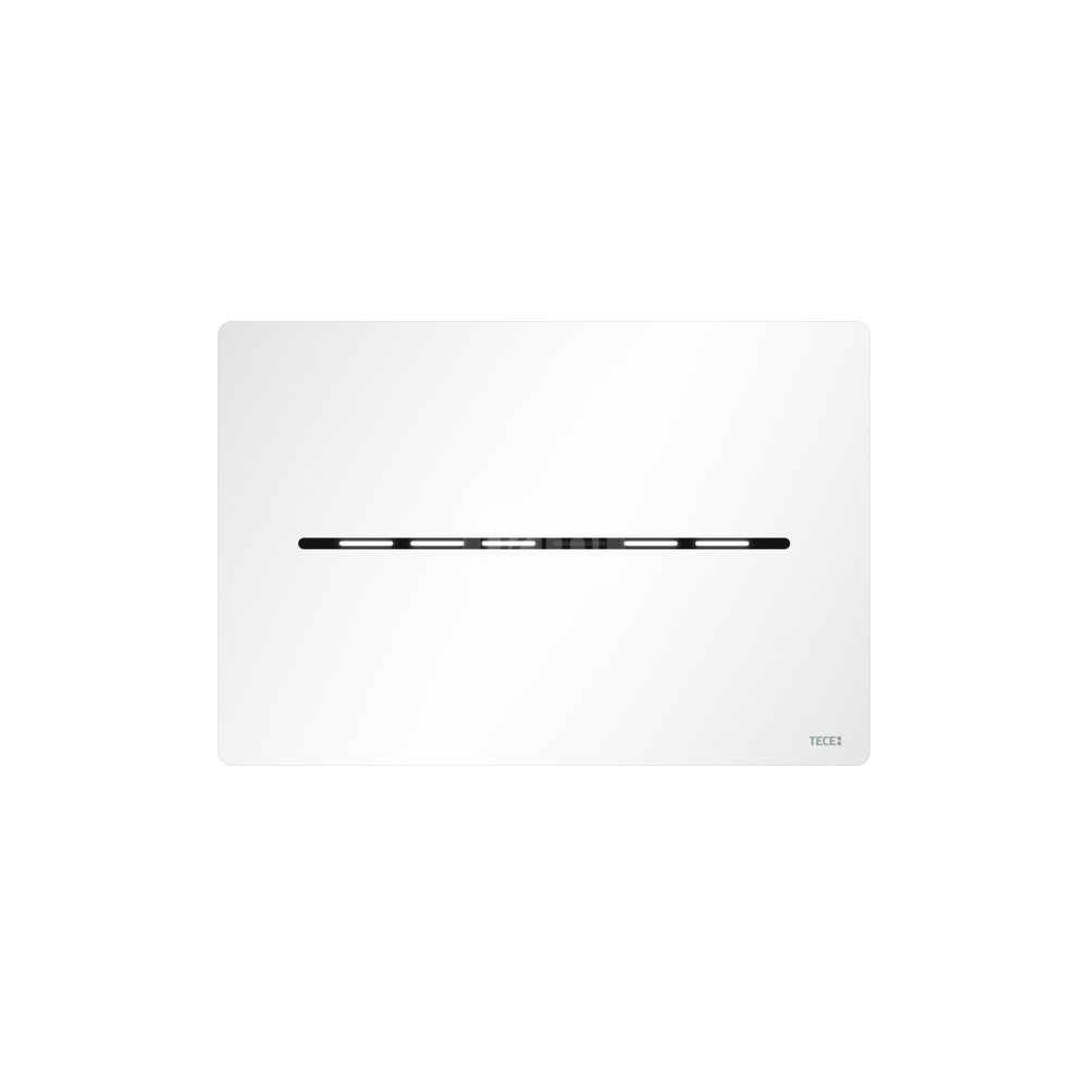 Mechanizm spłukujący elektroniczny do bezdotykowego uruchamiania standardowych spłuczek TECE (głębokość montażowa 13 cm), uruchamianych z przodu, z mechanizmem na wysokości ok. 1 M (środek płytki spłukującej). Bardzo płaski przycisk spłukujący ze stali nierdzewnej z materiałami montażowymi, wodoszczelną obudową baterii do instalacji w spłuczce (z czterema bateriami typu mono/D/LR 20) i silniczkiem uruchamiającym do spłukiwania jedną lub dwoma ilościami wody. Kompatybilny z płytką maskującą z koszem na kostki czyszczące.