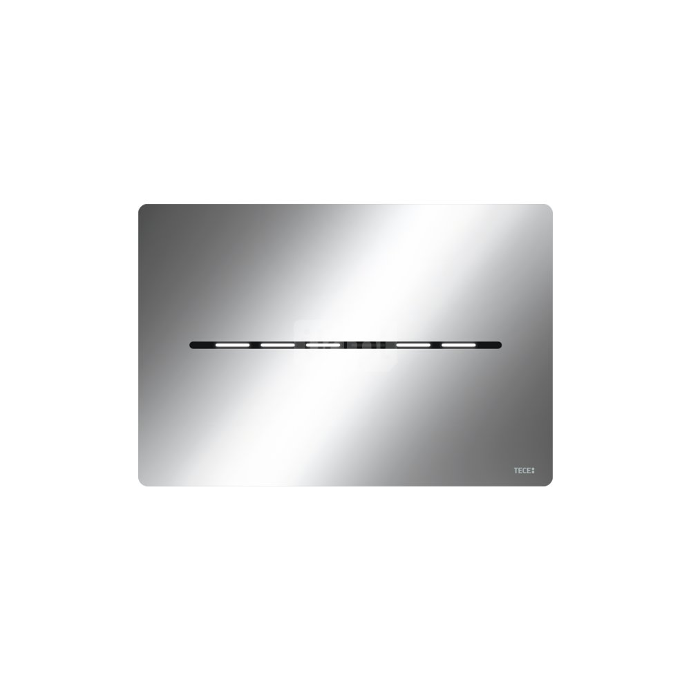 Mechanizm spłukujący elektroniczny do bezdotykowego uruchamiania standardowych spłuczek TECE (głębokość montażowa 13 cm), uruchamianych z przodu, z mechanizmem na wysokości ok. 1 M (środek płytki spłukującej). Bardzo płaski przycisk spłukujący ze stali nierdzewnej z materiałami montażowymi, wodoszczelną obudową baterii do instalacji w spłuczce (z czterema bateriami typu mono/D/LR 20) i silniczkiem uruchamiającym do spłukiwania jedną lub dwoma ilościami wody. Kompatybilny z płytką maskującą z koszem na kostki czyszczące.