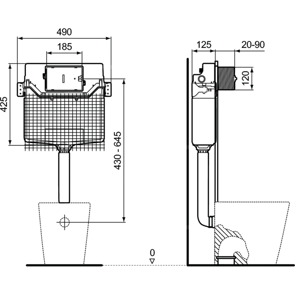 Do miski stojącej. Montaż podtynkowy, do zabudowy. Minimalna głębokość montażu 125 mm. Mechaniczny system spłukujący, możliwość zastosowania pneumatycznego lub elektronicznego systemu spłukującego (wraz z zamawianym oddzielnie zestawem do montażu przycisku). Spłukiwanie 2 funkcyjne, fabryczne ustawienie 6/3 l. Regulacja spłukiwania: 4/2 i 6/3 l. Zbiornik spłukujący wykonany z polipropylenu (PP), odporny na temperaturę, wyposażony w obudowę antykondensacyjną. Zawór SmartValve (oszczędność do 9 l wody/dzień); oznaczenie CE EN 14055 CL1; cichy zawór, zgodny ze standardami NF, klasa akustyczna pracy I, głębokość zbiornika 120 mm, 2 punktów przyłącza wody. Elementy w komplecie: Rura odpływowa 360 mm. Kompletny zestaw montażowy do ścieny. Siatka do zabudowu na mokro. Gumowa uszczelka do miski ø 45. Rura dopływu Ø45 mm. Zawór zamykający G ½". Do skompletowania z zamawianymi oddzielnie przyciskami spłukującymi i zestawami do montażu przycisków.