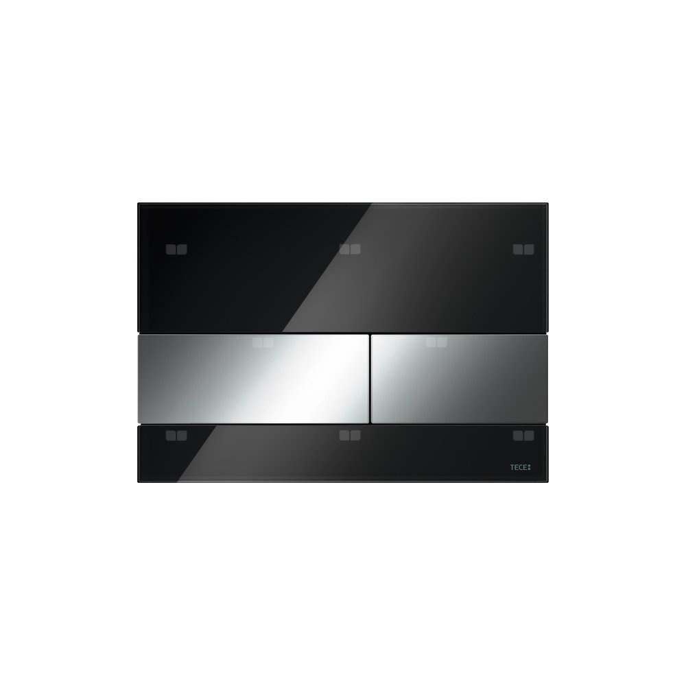 Przycisk spłukujący do spłuczek TECE uruchamiany z przodu lub od góry. Płaski przycisk szklany. Odpowiedni do montażu zlicowanego w połączeniu z ramką montażową do WC (np. Nr kat. 9240649). Kompatybilny z płytką maskującą z koszem na kostki czyszczące.