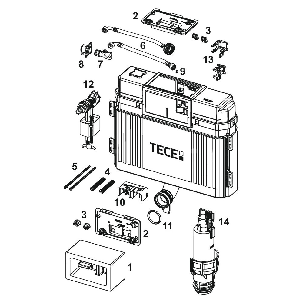 Spłuczka podtynkowaTECETECE, 522 x 485 x 141 mm, uruchamiana od góry, uruchamiana od przodu, z kolanem odpływowym 50mm