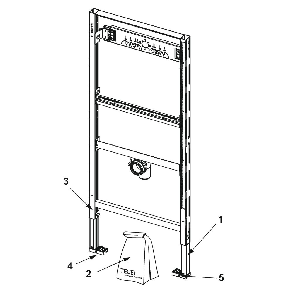 Moduł pisuarowy do trzymania zaworów spłukujących zamontowanych w ścianie. Stelaż montażowy pod umywalkę do mocowania na kształtownikach stalowych TECEprofil lub do montażu w ścianach z profili metalowych lub drewnianych oraz jako ścianka przednia lub moduł narożnikowy.