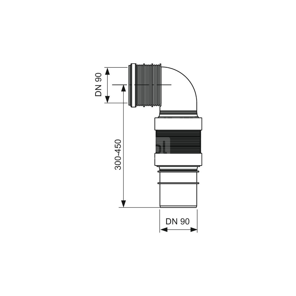 Elastyczne kolano odpływowe DN 90, z PE-HD (nadający się do zgrzewania).