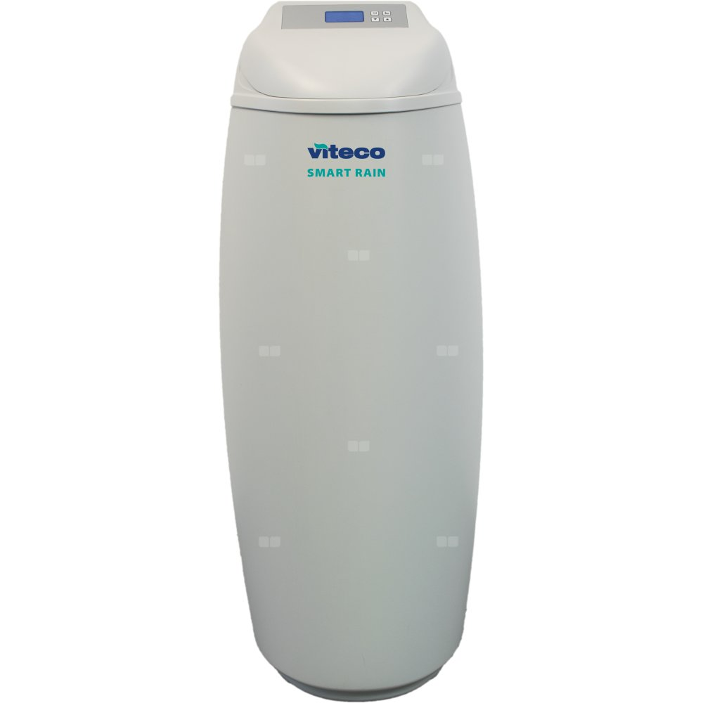 Kompaktowy zmiękczacz wody Viteco SMART RAIN 30L z ¾" przyłączami do instalacji, z kompletnym zestawem filtracji wstępnej i zestawem do mierzenia twardości wody. Urządzenie stosujemy tylko na ujęciach wodociągowych, w których woda pozbawiona jest innych pierwiastków, takich jak żelazo, mangan, azotany, azotyny, itp. Zawartość złoża żywicy jonowymiennej - 30 litrów, pojemność zbiornika na sól - 45 kilogramów. Zastosowanie: w domach jednorodzinnych zamieszkiwanych przez 5 - 6 osób i średnim zużyciu wody. Możliwość sterowania ze smartfona (przez opcjonalny moduł WiFi).