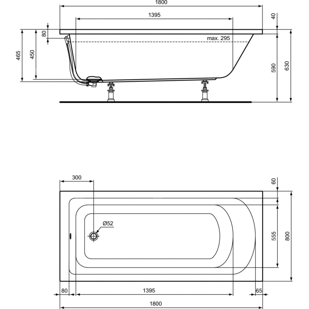 Wanna wykonana z wysokiej jakości akrylu sanitarnego gr 4 mm. Pojemność wanny 295 l. EN 14 516. Zalecane dodatkowe elementy: Uniwersalny zestaw montażowy do wanien do zabudowy (kompletny zestaw z regulowanymi nogami do wanny - 4 szt., profile do zamocowania nóg -2 szt., metalowe elementy do zamocowania wanny do ściany -3 szt.) K727467. Zestaw odpływowo - przelewowy MULTIPLEX, Ø52 mm, chromowana pokrywa K7804AA. Zestaw odpływowo - przelewowy MULTIPLEX TRIO z funkcją napełniania wanny przez przelew, Ø52 mm, chromowana pokrywa K7807AA.