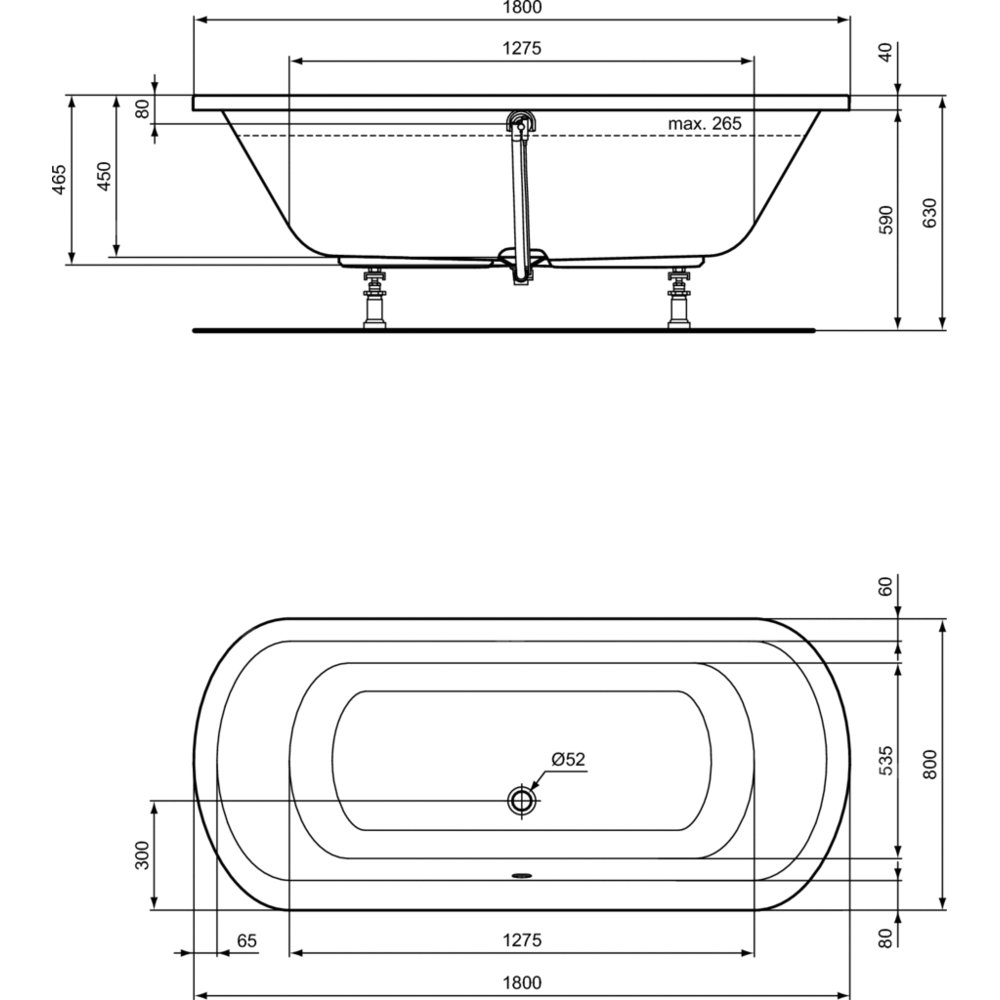 Wanna wykonana z wysokiej jakości akrylu sanitarnego gr 4 mm. Pojemność wanny 265 l. DIN EN 263. DIN EN 14 516. DIN EN 198. Zalecane dodatkowe elementy: Uniwersalny zestaw montażowy do wanien do zabudowy (kompletny zestaw z regulowanymi nogami do wanny - 4 szt., profile do zamocowania nóg -2 szt., metalowe elementy do zamocowania wanny do ściany -3 szt.) K727467. Zestaw odpływowo - przelewowy MULTIPLEX, Ø52 mm, chromowana pokrywa K7804AA. Zestaw odpływowo - przelewowy MULTIPLEX TRIO z funkcją napełniania wanny przez przelew, Ø52 mm, chromowana pokrywa K7807AA.
