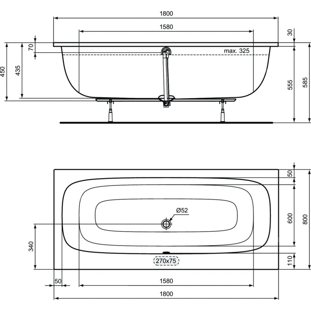 Wanna akrylowa prostokątna Ideal Standard i.life do zabudowy lub montażu z panelami (przednimi i bocznymi). Wykonana z wysokiej jakości akrylu sanitarnego 4 mm ze wzmocnieniem konstrukcyjnym dna i krawędzi. Z otworem na syfon i przelew: Ø 52 mm. Sprawdź kompletną listę opcji rekomendowanego wyposażenia w katalogu lub cenniku.