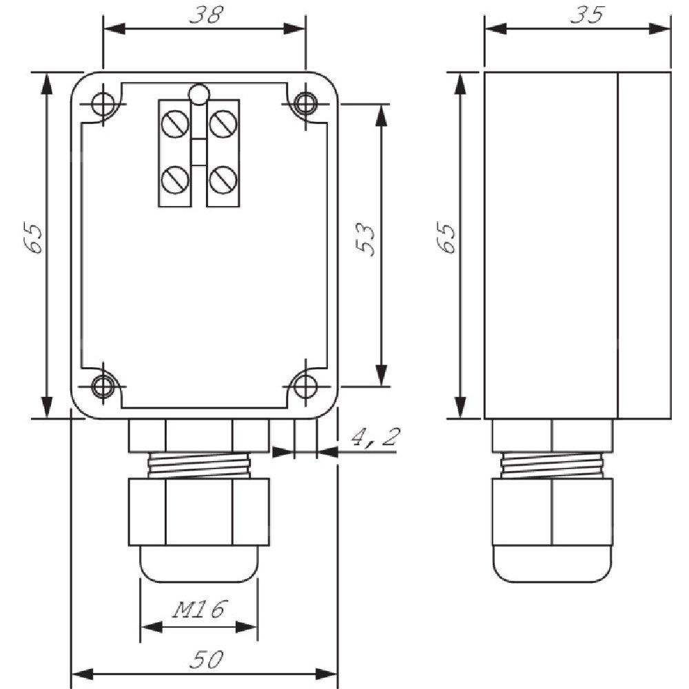 Obudowa z materiału izolacyjnego - poliwęglanu wzmocnionego włóknem szklanym, kolor szary podobny do RAL 7035. Mocowanie za pomocą dwóch do czterech śrub 4 mm (nie wchodzą w zakres dostawy).