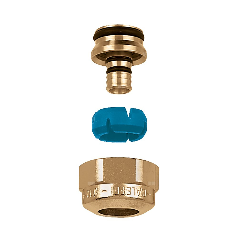 Złączka zaciskowa do pojedynczych i wielowarstwowych rur z tworzywa Zakres temperatury pracy: 5÷75°C (wielowarstwowa 95°C). Przyłącze: G 3/4" (ISO 228-1) GW, Podłączenie do złączek Caleffi. Przyłącze: Øwewnętrzna 10,5–11, Øzewnętrzna 16–18. Maksymalne ciśnienie pracy: 10 bar. Zakres temperatury medium: 5–75 °C.