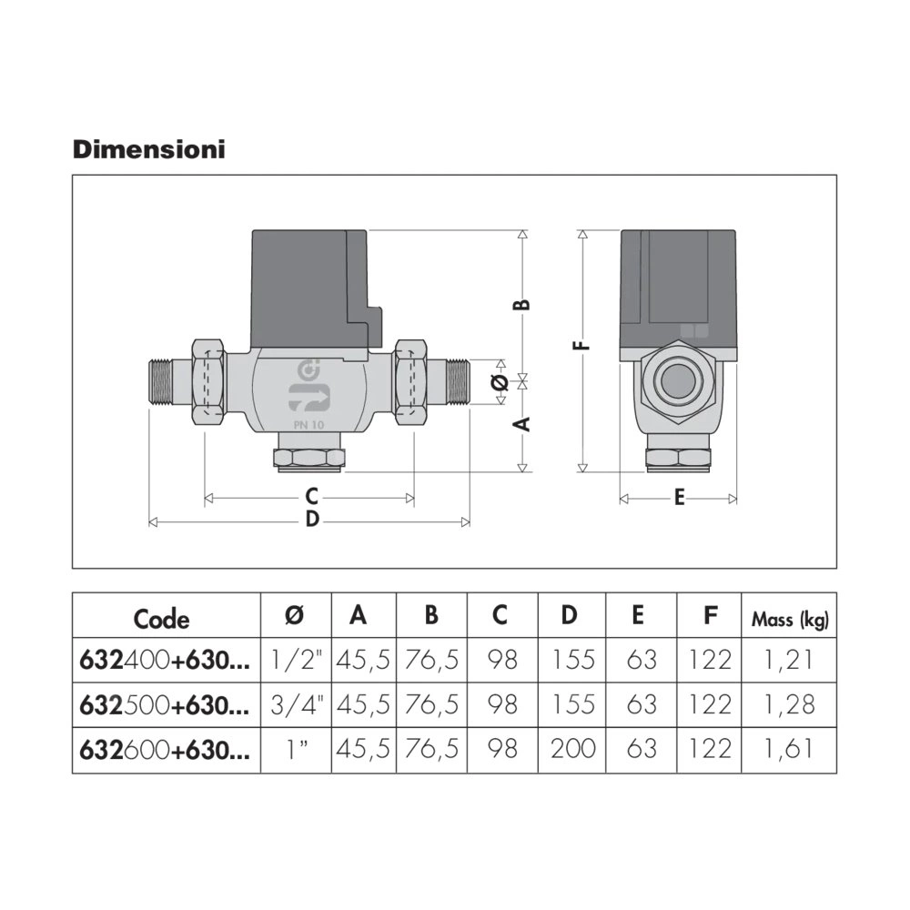 Dwudrożny zawór strefowy, tłokowy Przyłącze: G 3/4" A (ISO 228-1) GZ. Maksymalne ciśnienie pracy: 10 bar. Zakres temperatury medium: -5–95 °C. △p max.: 1 bar. Kv przelot: 6,27 m³/h.