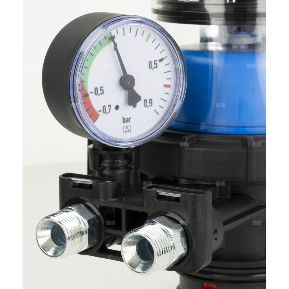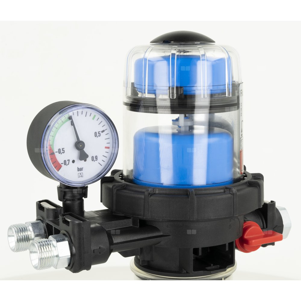 Zintegrowane w zaworze zwrotnym zabezpieczenie przeciwko nadmiernemu wzrostowi ciśnienia otwiera przepływ do zbiornika po przekroczeniu 1,5 bara, chroniąc instalację przed uszkodzeniem.
