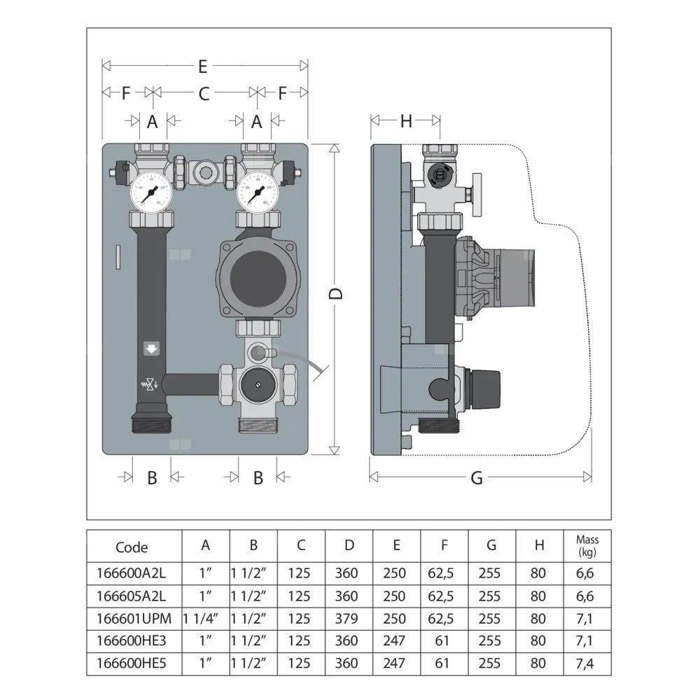 Przyłączenie od strony kotła: 1 1/2" GZ.