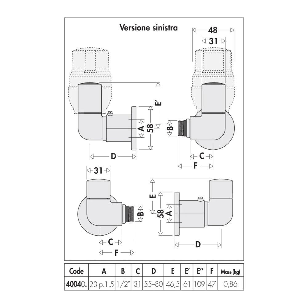- 3-osiowy grzejnikowy zawór termostatyczny z pokrętłem przystosowany do montażu głowicy termostatycznej serii 200015;