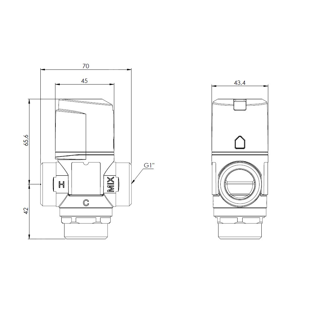 Zawór regulacyjny termostatyczny do wody ciepłej AFRISO ATM 561 mosiądz GZ 1'', DN 20, zakres temp. 20-43'C, Kvs 2.5 m3/h, maksymalna temperatura 90'C, maksymane ciśnienie 10 bar