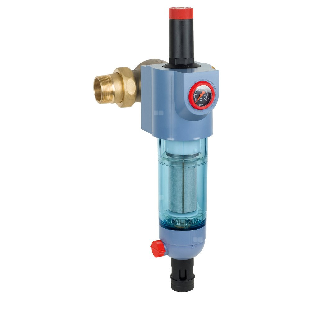 Stacja filtrująco-redukcyjna składa się z filtra z płukaniem wstecznym oraz regulatora ciśnienia. Wkład filtra składa się z górnej i dolnej części. W położeniu pokrętła "filtrowanie" – górna część wkładu filtrującego nie bierze udziału w filtrowaniu, a woda wpływająca do filtra przechodzi jedynie przez dolną część wkładu, od zewnątrz do wewnątrz, pozostawiając na powierzchni filtra zanieczyszczenia. Po otwarciu zaworu kulowego wkład filtracyjny przemieszcza się ku dołowi, dopóki nie odetnie przepływu wody do zewnętrznej powierzchni głównej części filtra. Jednocześnie odpowiednio odsłania się część górna filtra przejmując funkcję filtrowania wody do bieżącego użytku. Woda filtrowana przez górną część wkładu przepływa jednocześnie do środka wkładu i uruchamia wirnik, który obracając się powoduje odśrodkowe wyrzucanie zanieczyszczeń zgromadzonych na zewnętrznej powierzchni siatki filtracyjnej. Filtr automatycznie wraca do położenia pracy po zamknięciu zaworu kulowego. Wbudowana wkładka redukcyjna działa na zasadzie równoważenia sił działających na membranę od strony sprężyny regulacyjnej i od strony przepływającego czynnika. Ciśnienie wejściowe nie ma wpływu na zamykanie i otwieranie się zaworu i z tego powodu fluktuacja ciśnienia na wejściu nie wpływa na ciśnienie wylotowe.