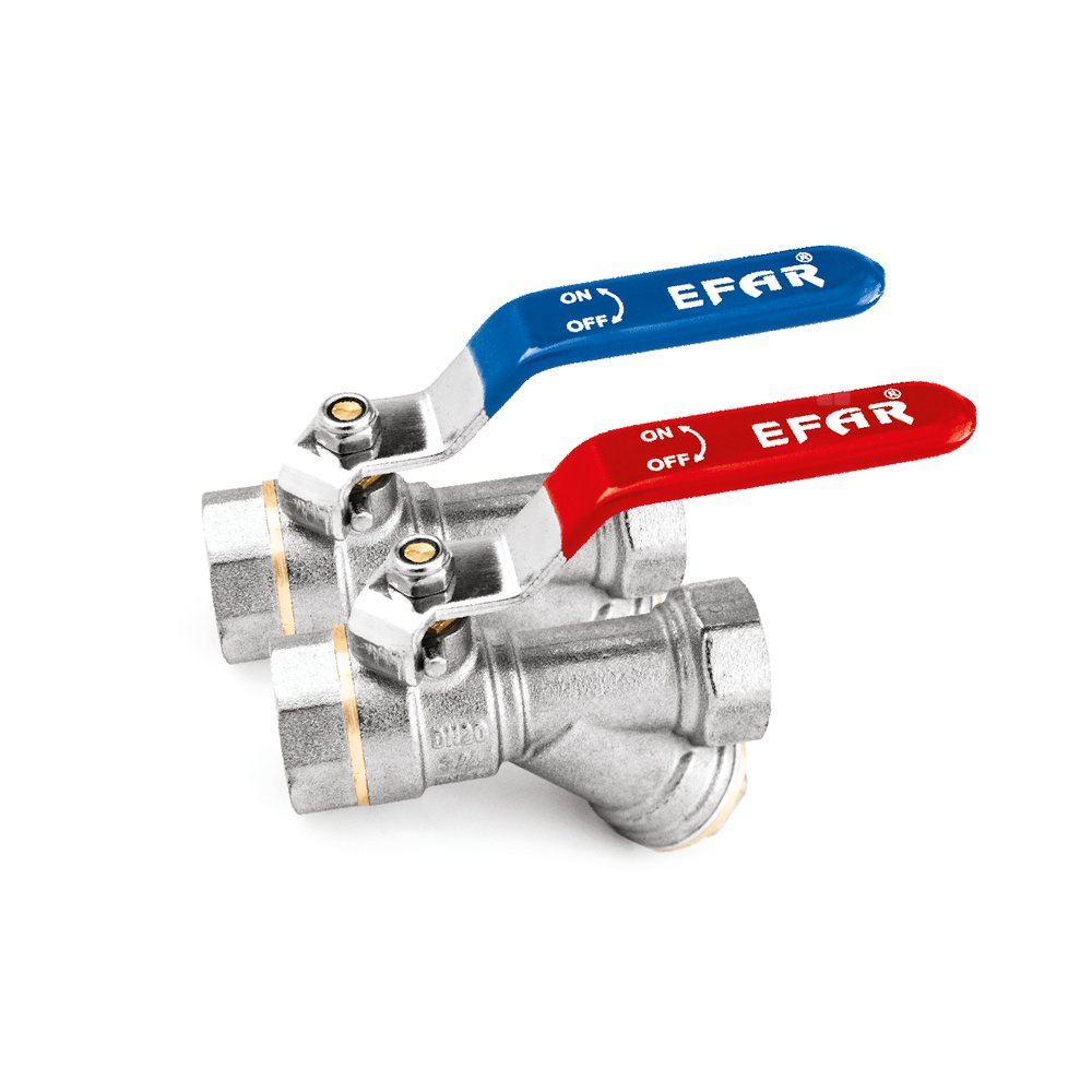 Kurek kulowy do wody powietrza glikolu (z filtrem) ART. 127 EFAR 6/60 DN 1"Nieb.