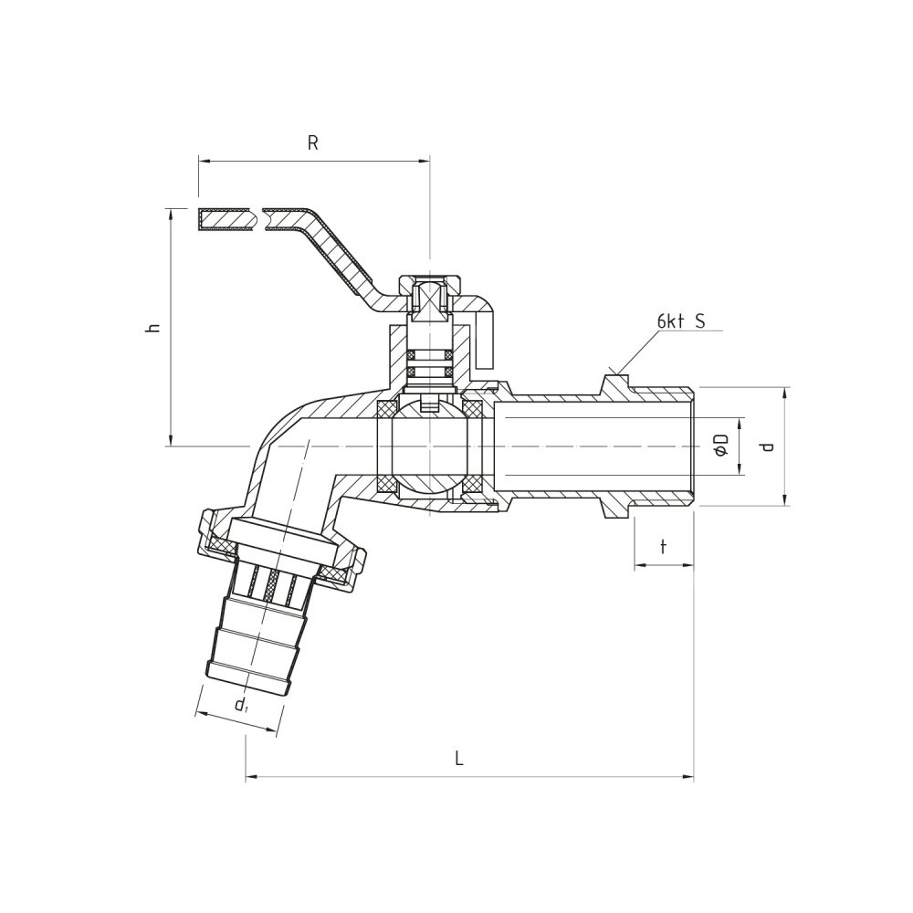Zawór kulowy PERFEXIM 3102 mosiądz niklowany czerpalny, PN10 1'' gz x przyłącze do węża, uchwyt: dźwignia