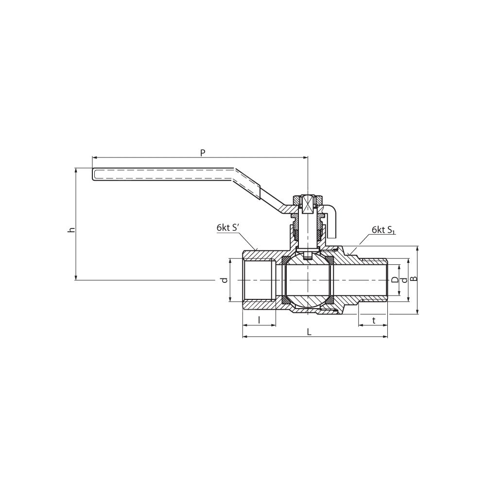 Zawór kulowy PERFEXIM HUZAR typ ciężki PHA-200/2 mosiądz niklowany 1/2'' gz x gw, uchwyt: dźwignia