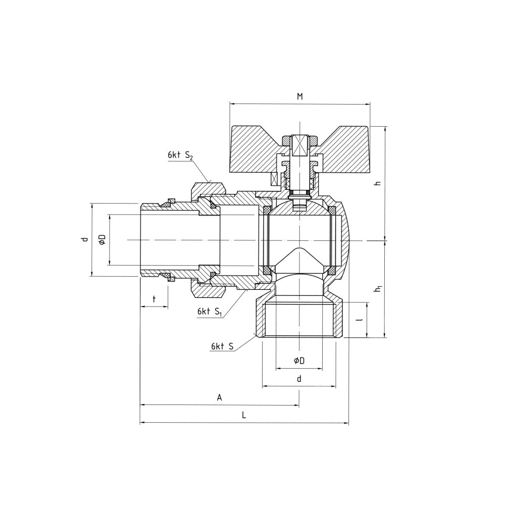 Zawór kulowy PERFEXIM PHA-010A mosiądz niklowany, PN30 1'' gz x gw kątowy, uchwyt: motylek (czerwony)