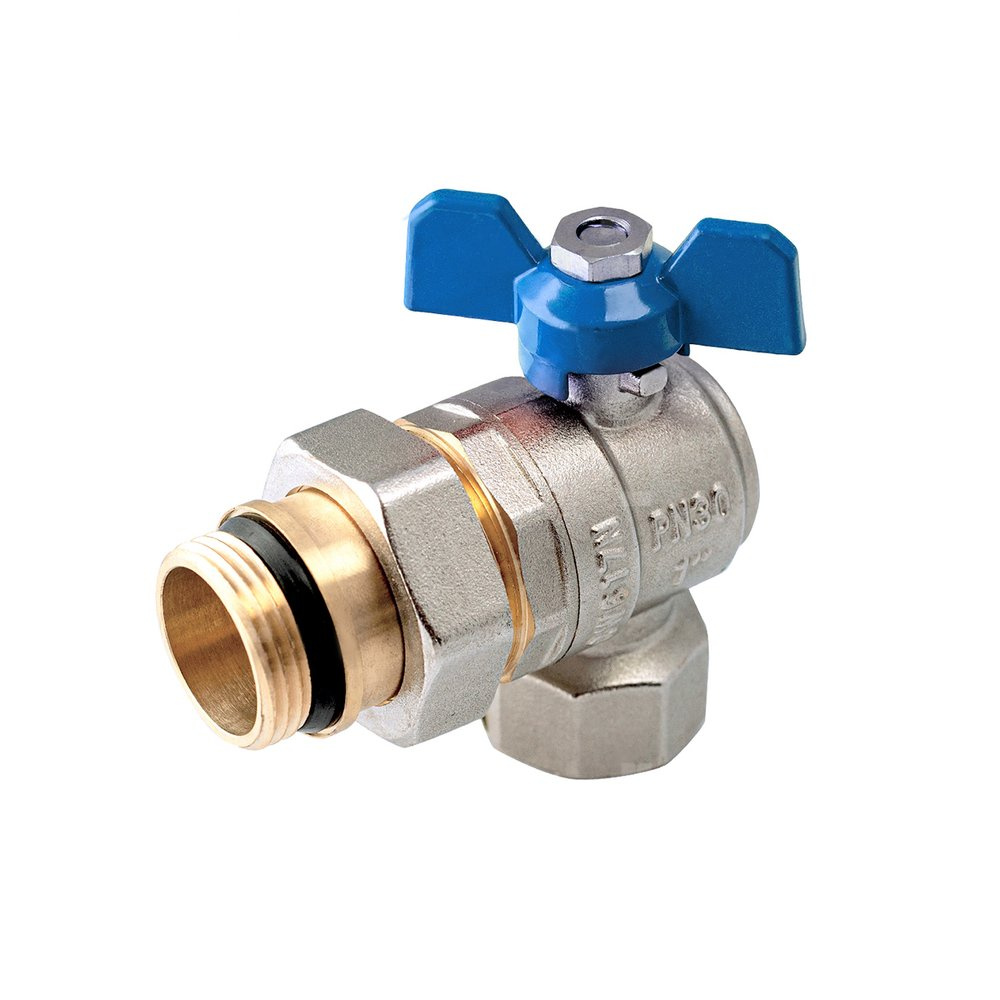 Zawór kulowy PERFEXIM PHA-010A mosiądz niklowany, PN30 1'' gz x gw kątowy, uchwyt: motylek (niebieski)