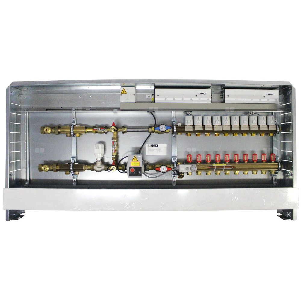 Kompletna stacja regulacyjna 230 V, 50 Hz, do ogrzewania podłogowego oraz dodatkowo do podłączenia 2 grzejników, przyłącze z lew