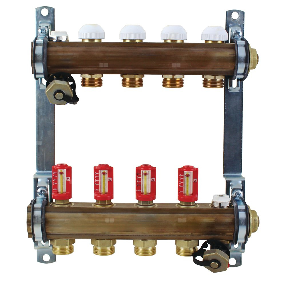 Rozdzielacz do ogrzewania podłogowego HERZ 16-obieg. mosiądz GW 1'' x GZ 3/4'' + przepływomierz + zawór napełn/spust + odpowietrznik