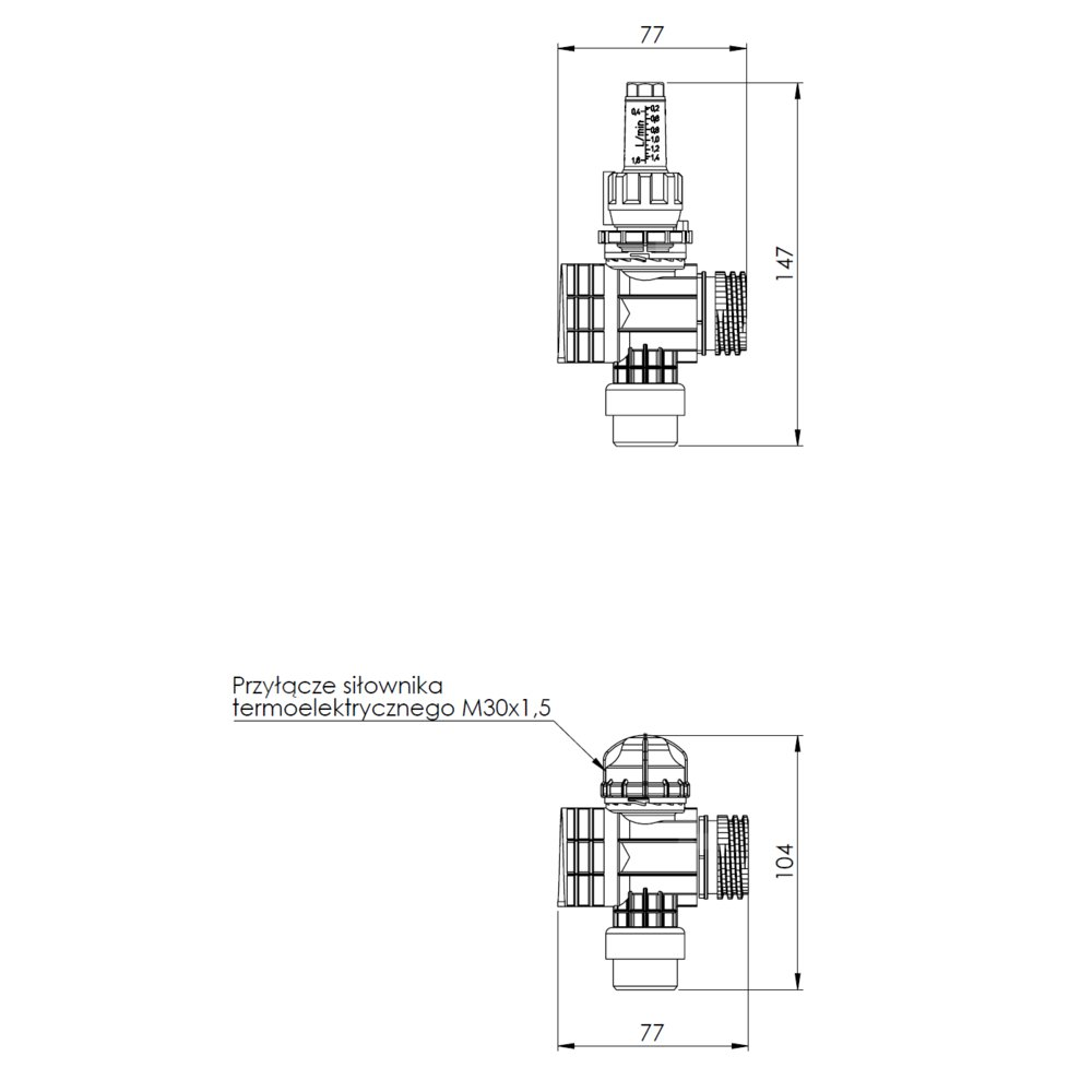 Na zaworze odcinającym na belce powrotnej można zamontować siłownik termoelektryczny (np. TSA-01) i podłączyć go do systemu sterowania strefowego (np. FloorControl, CosiTherm), co pozwoli ustawić różne temperatury w każdej ze stref.