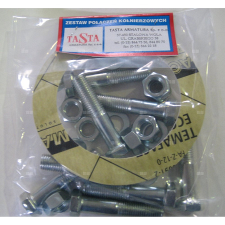 Zestaw uszczelniający do przyłączy kołnierzowych do wody, T.max 150°C, ciśnienie max DN15-DN50 4 Mpa; DN65-DN200 1,6 Mpa, w komplecie znajduje się uszczelka 2mm, śruby i nakrętki ocynkowane