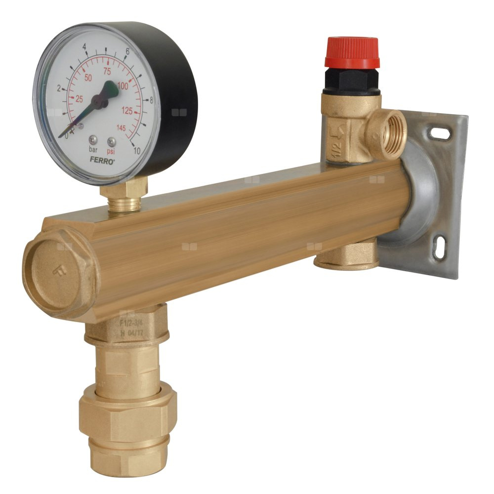 Temperatura pracy: max. 95°C ciśnienie pracy: max. 6 bar maksymalna chwilowa temperatura wody: 110°C dla naczyń przeponowych o pojemności do 35 l i średnicy nie większej niż 320 mm belka wykonana z mosiądzu CW617N płytka montażowa ze stali nierdzewnej wyposażenie: zawór bezpieczeństwa manometr dostępne z szybkozłączem do naczynia przeponowego lub bez