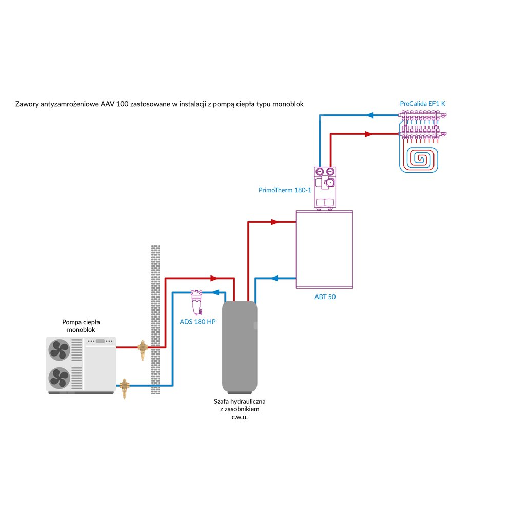 Stosowany w instalacjach grzewczych i chłodzących z powietrzną pompą ciepła typu monoblok.