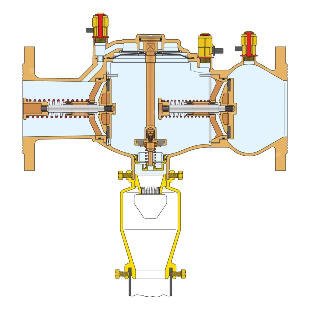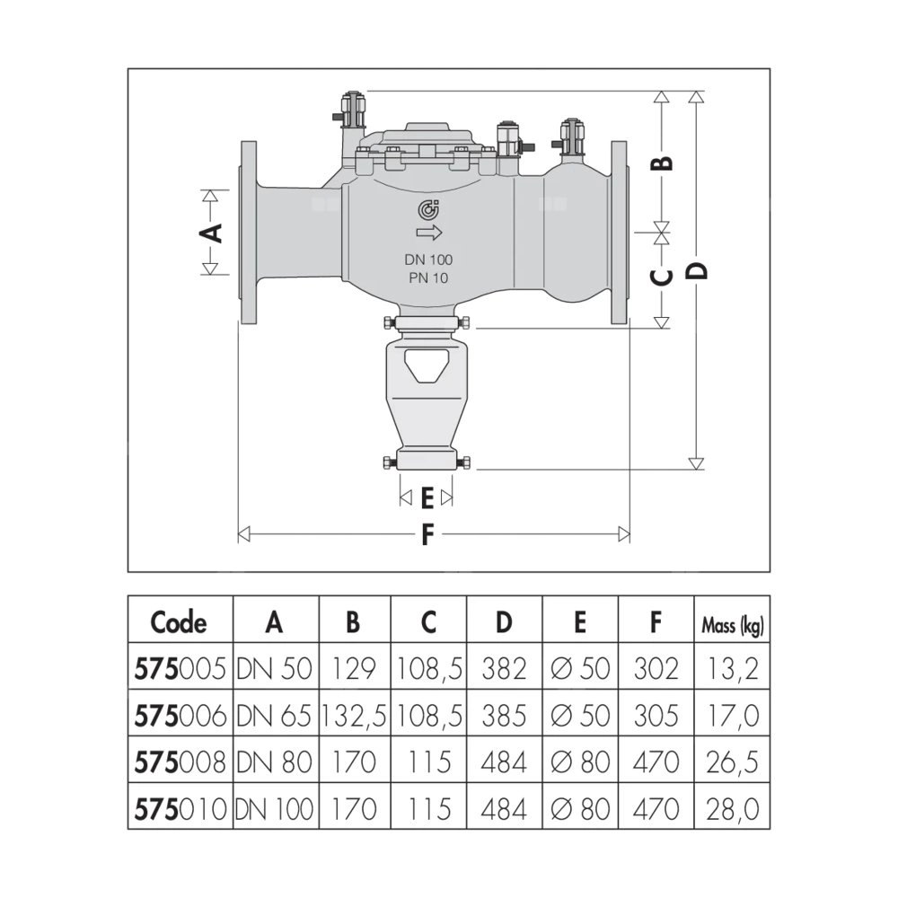 Izolator przepływów zwrotnych ze strefą obniżonego ciśnienia z możliwością nadzoru, wersja standardowa. Korpusy z brązu. Przyłącza kołnierzowe PN 16. Współpraca z przeciwkołnierzem EN 1092-1. Typ BA. Certyfikowane zgodnie z normą EN 12729. Przyłącze: DN 50 (EN 1092-1) PN 16. Różnicowe ciśnienie robocze: 14 kPa. Zakres temperatury medium: 0–65 °C. PN (Ciśnienie nominalne): PN 10. DN: DN 50 (korpus). Materiał: brąz.