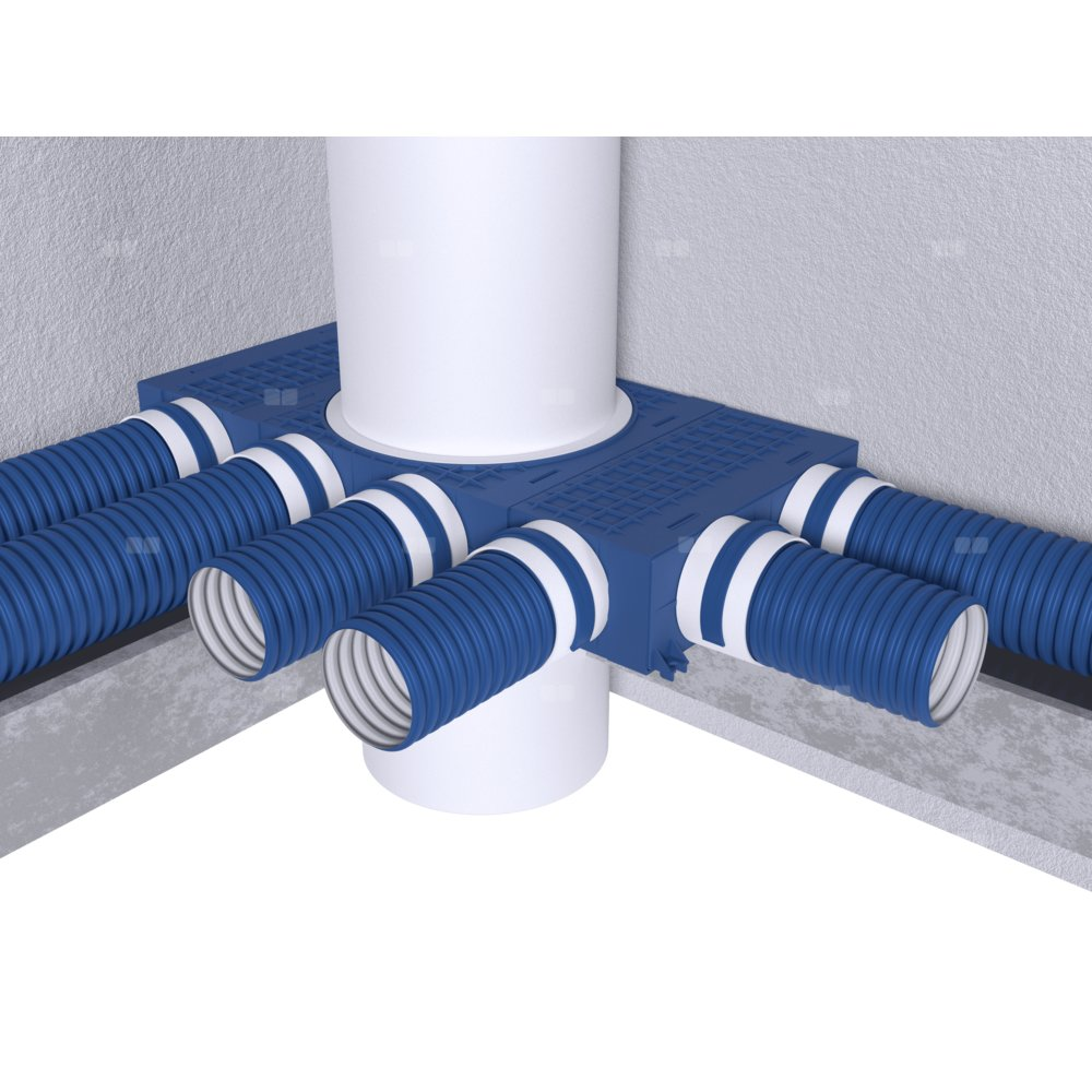 Moduł bazowy przelotowy (MPBVT+75) to nowa kształtka wchodząca w skład systemu VENTIFLEX PLUS, dzięki której można zbudować przelotowy rozdzielacz.