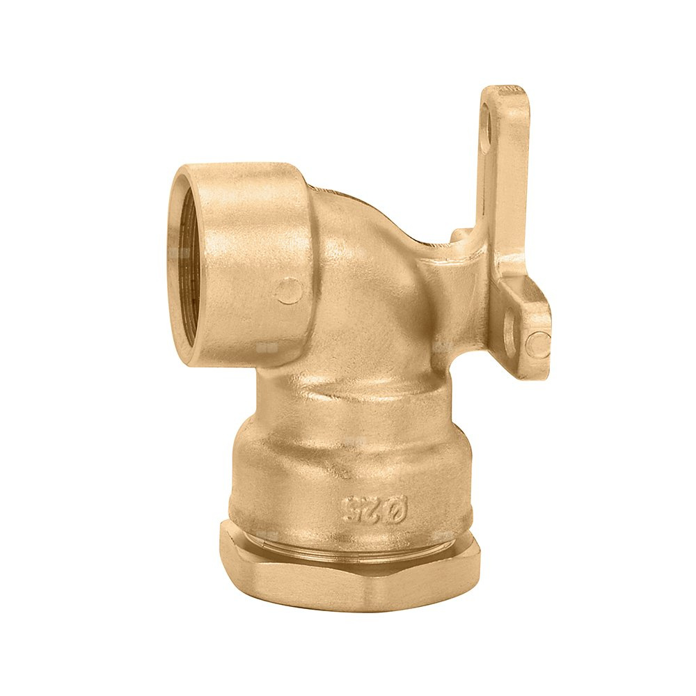 Kolanko z gwintem wewnętrznym do montażu na ścianie Do rur polietylenowych. Przyłącze: Ø 25, wlot. Przyłącze: Rp 1/2" (EN 10226-1) GW, wylot. Maksymalne ciśnienie pracy: 16 bar. Zakres temperatury medium: 0–40 °C. Materiał: mosiądz.