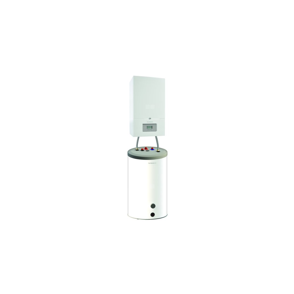 Naścienny, gazowy kocioł kondensacyjny w zestawie z emaliowanym podgrzewaczem c.w.u. SRNB 100, 120 lub 150 do ustawienia pod kotłemPrzystosowany do spalania gazu z 20% domieszką wodoruKocioł o nowatorskim projekcie i bardzo zwartej konstrukcji: 395 x 700 x 285 mm oraz lekki: 29 kgWyposażony i nastawiony do pracy z gazami ziemnymi, z możliwością dostosowania do propanu bez dodatkowego zestawuW dostawie króciec powietrzno-spalinowy Ø60/100 mmMożliwość podłączenia do przewodu powietrzno-spalinowego (homologacje C10, C13 i C33)Możliwość podłączenia do komina (homologacja B23p i C93), systemu rozdzielczego (C53) lub zbiorczego systemu odprowadzania spalin (C43P)Sprawność przy 30% obciążenia do 109,7% (przy pełnym do 105,6%)Niska emisja zanieczyszczeń: NOx<30 mg/kWhKompaktowy wymiennik toroidalny z pojedynczą wężownicą, wykonany ze stali nierdzewnej z 5-letnią gwarancjąModuł powietrze/gaz, zawierający palnik gazowy modulujący od 5,8 kW mocy, z klapą zwrotną do pracy z systemami odprowadzania spalin pod ciśnieniem, wentylator z układem tłumiącym zasysanie powietrzaModuł hydrauliczny wykonany z mosiądzu zawierający pompę modulowaną klasy A, o wsp. efektywności energ. EEI<0,23, zawór przełączający c.o./c.w.u., zawór bezp. c.o. 3 bar, ogranicznik przepływu, detektor przepływu, zawór do opróżnianiaNaczynie wzbiorcze o poj. 7 litrów zam. w ramie nośnejKonsola sterownicza z podświetlanym wyświetlaczem LCD i przyciskami funkcyjnymi do prostego wyboru funkcji z dostępem do menu serwisowego (czujnik temp. zew. AF60 dostępny jako wyposażenie dodatkowe)Opcjonalnie dostępne modulujące i niemodulujace termostaty pokojowe z możliwością programowania tyg.Możliwość podłączenia opcjonalnej grzałki o mocy 1,5 kW, 2,0 kW lub 3,0 kW (230 V)W dostawie czujnik c.w.u. oraz zestaw podłączeniowy kocioł-podgrzewacz