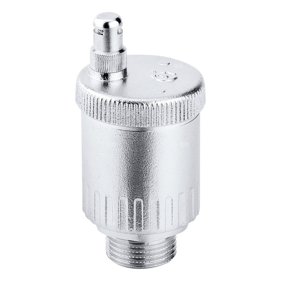 Odpowietrznik automatyczny z zamknięciem higroskopijnym. Chromowany. Przyłącze: G 3/4" A (ISO 228-1) GZ. Maksymalne ciśnienie pracy: 10 bar. Maksymalne ciśnienie upustowe: 2,5 bar. Zakres temperatury medium: 0–120 °C. Wykończenie: chromowane. Materiał: mosiądz.