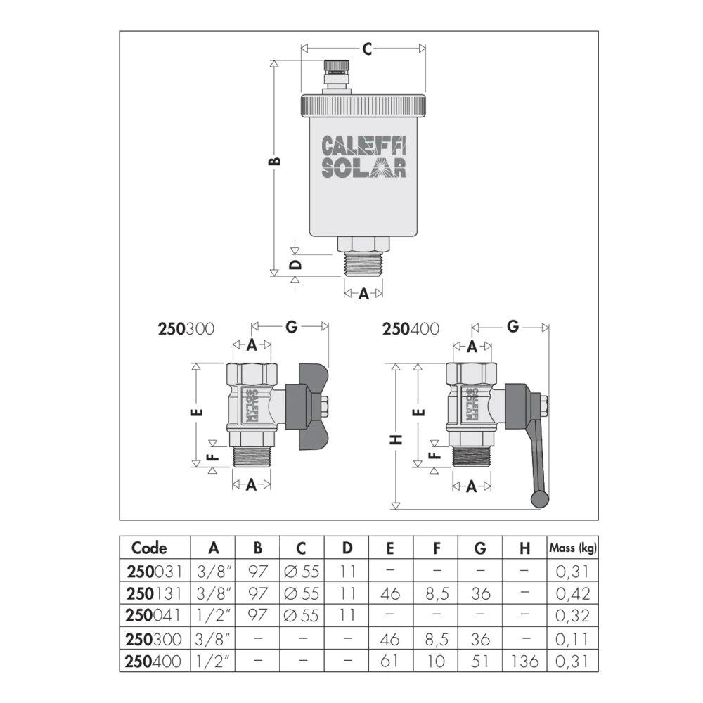 Odpowietrznik automatyczny CALEFFI do instalacji solarnych bez zaworu odcinającego GZ mosiądz chromowany fi 1/2''