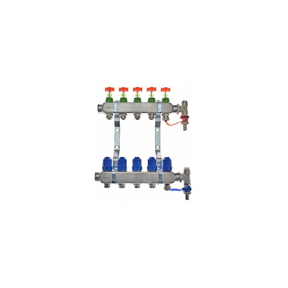 Rozdzielacz do ogrzewania podłogowego QIK Optimo BASIC III PC - RNZT-2-50 2,5l 6-obieg. inox GW 1'' x GZ 3/4'' + przepływomierz