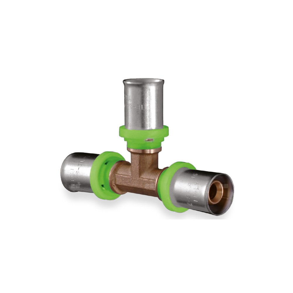 Trójnik QIK Zaprasowywany II mosiądz 26 mm (złącze zaprasowywane x złącze zaprasowywane x złącze zaprasowywane)