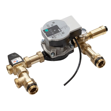 Grupa pompowo-mieszająca do regulacji temperatury ogrzewania podłogowego w zakresie 35-60°C z pompą WILO Kv 1,6. Dedykowana do rodzielaczy 92C2xxx. Wyposażenie: