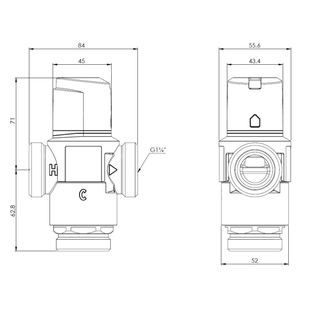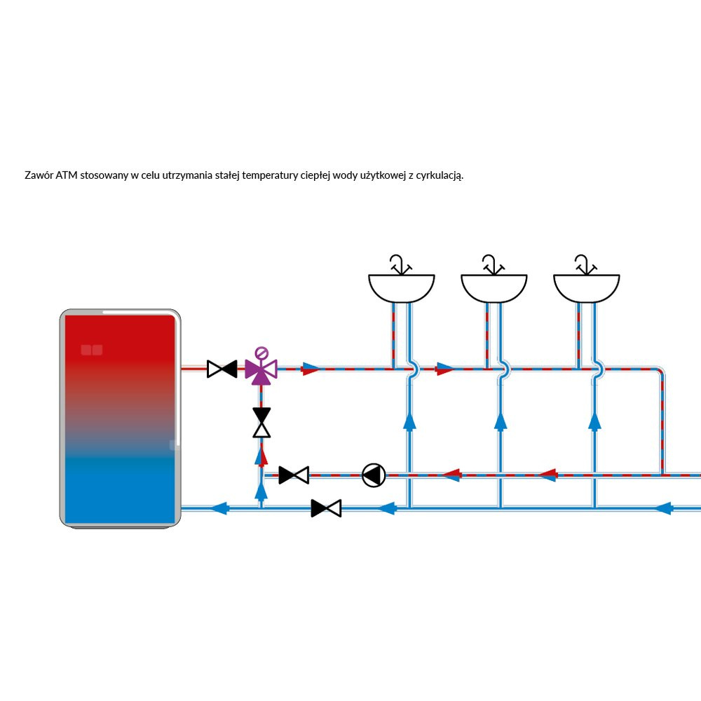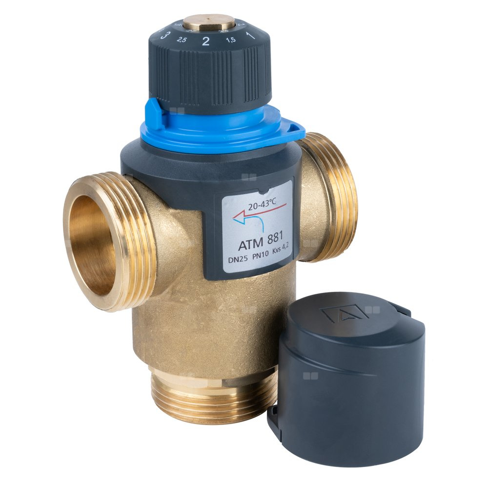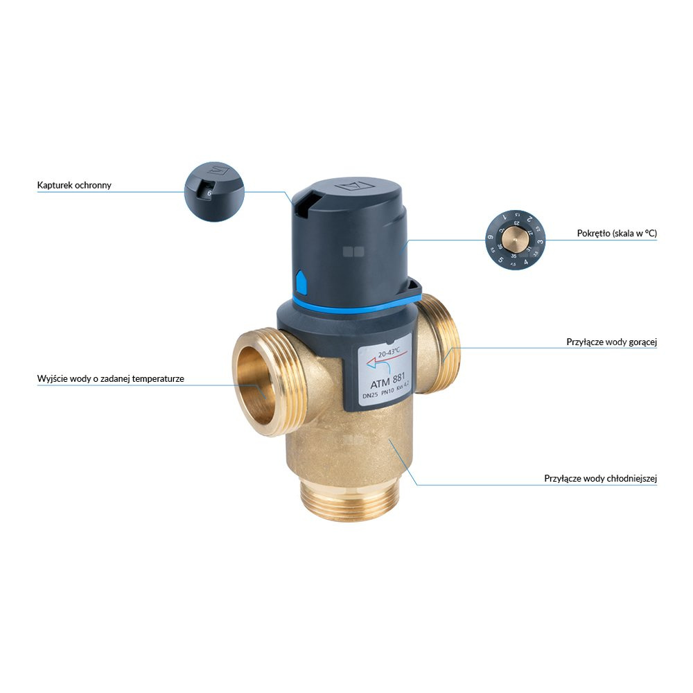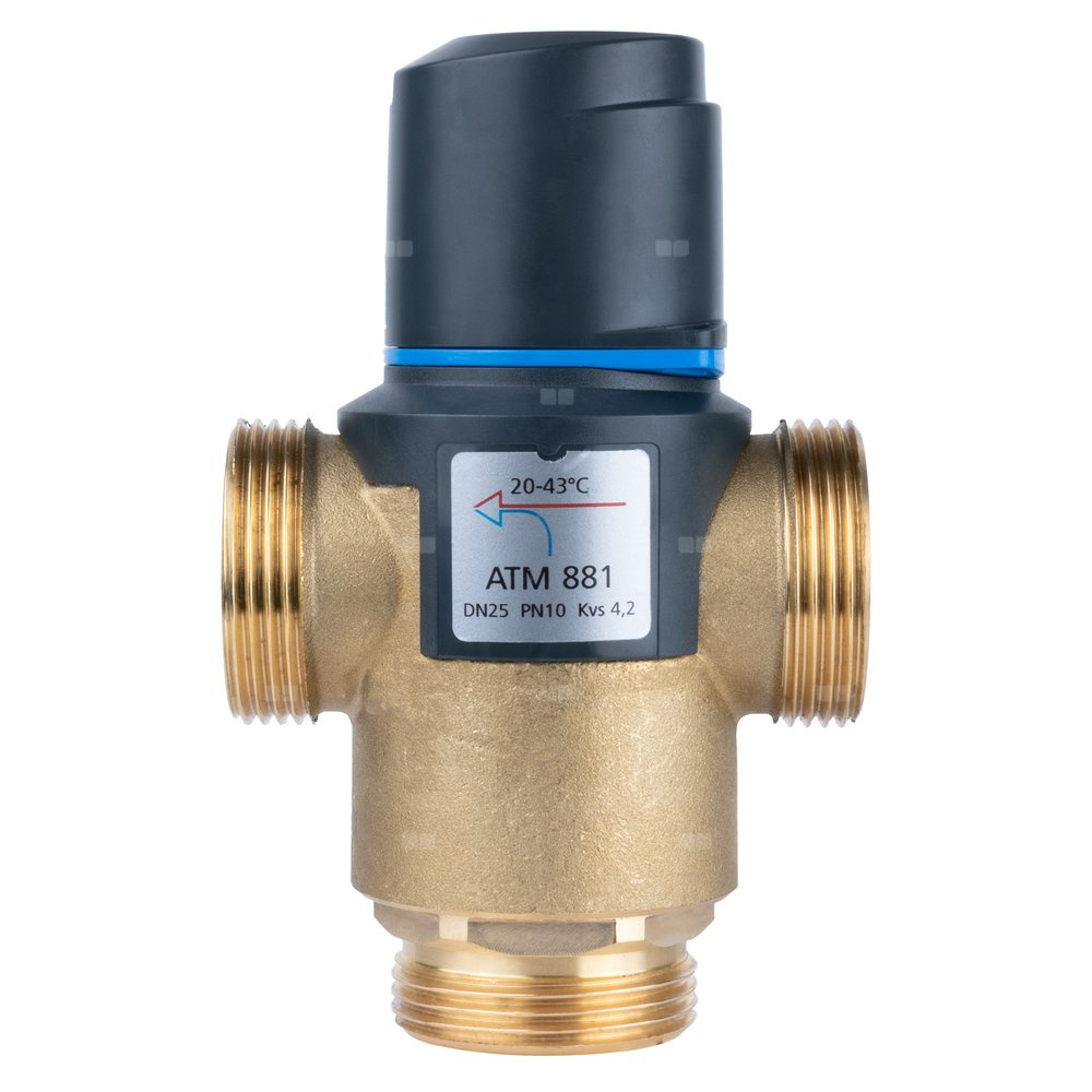Zawór regulacyjny termostatyczny do wody ciepłej AFRISO ATM 881 mosiądz GZ 1 1/4'', DN 25, zakres temp. 20-43'C, Kvs 4.2 m3/h, maksymalna temperatura 90'C, maksymane ciśnienie 10 bar