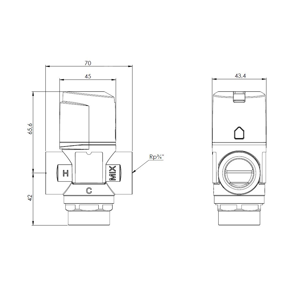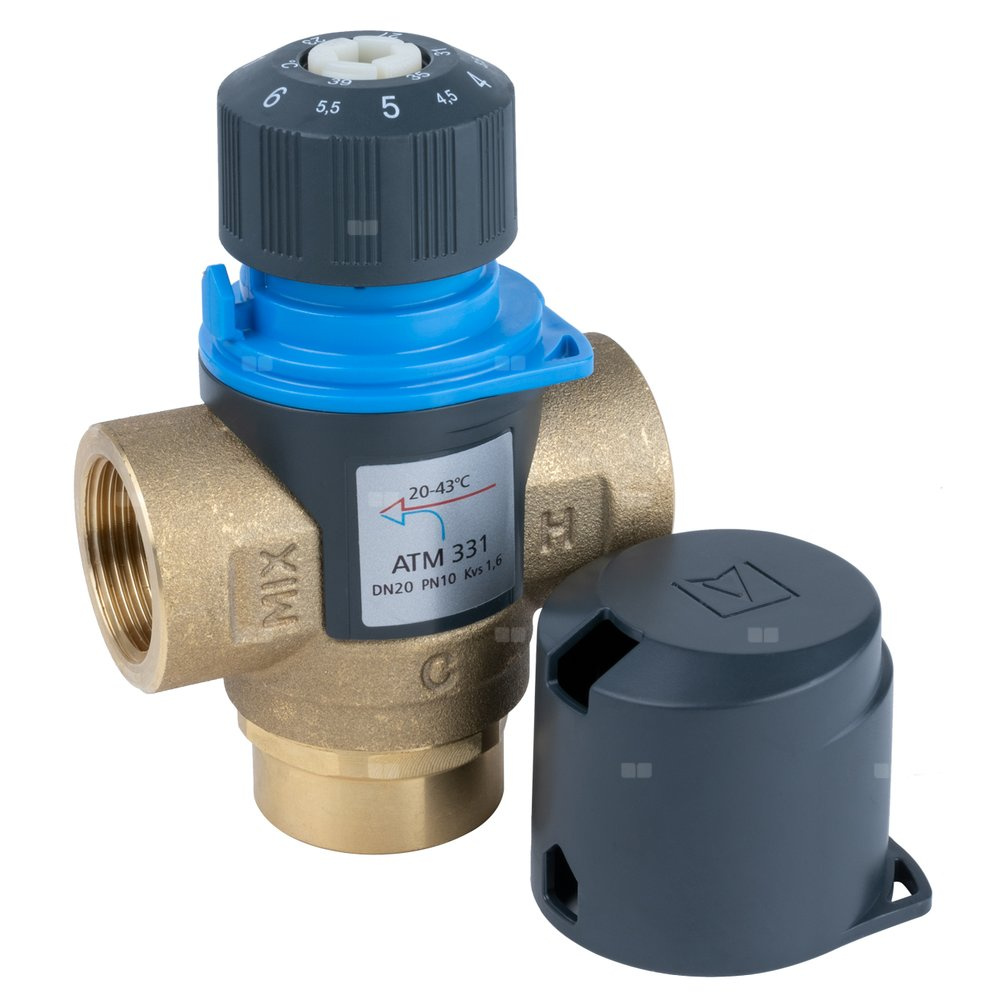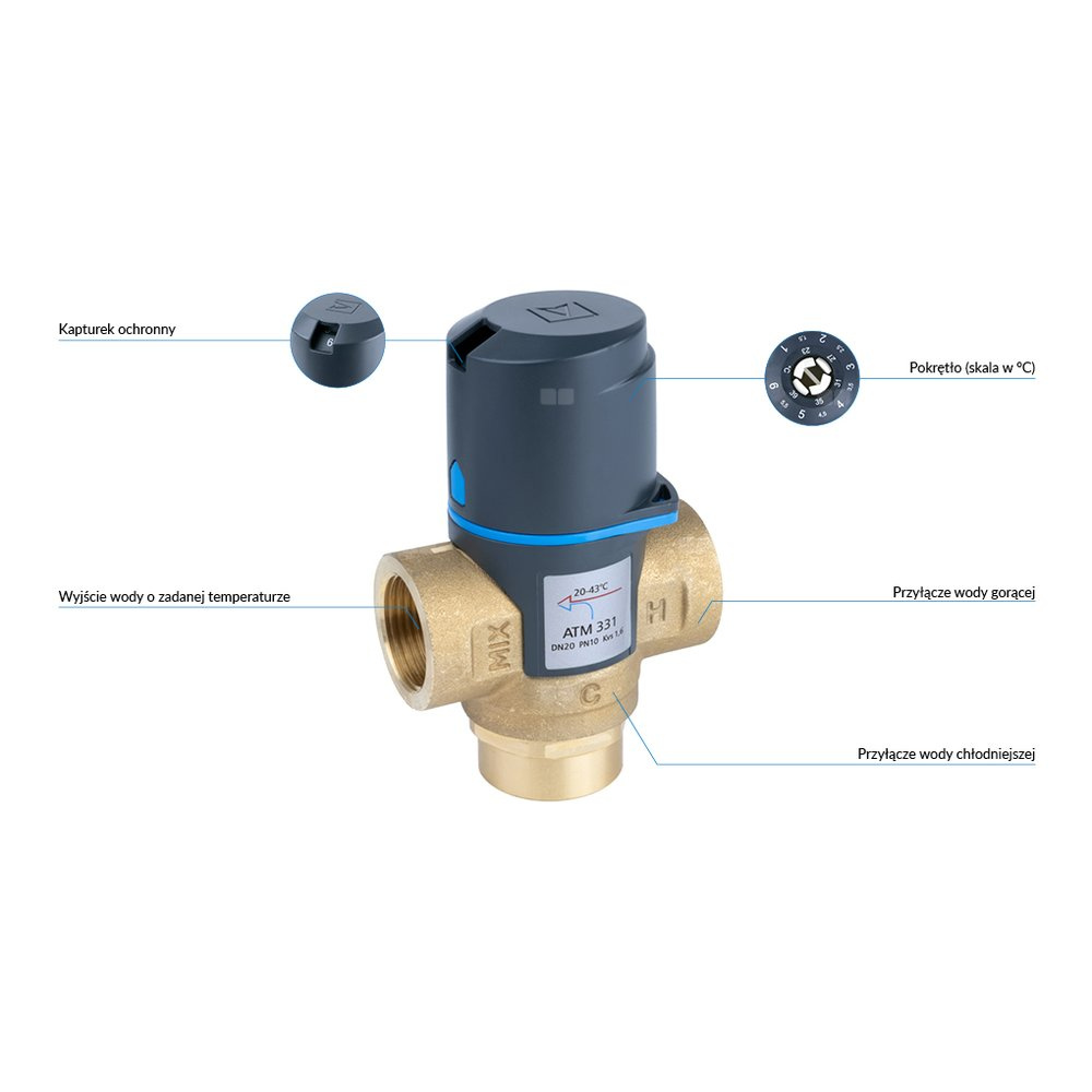 Zawór regulacyjny termostatyczny do wody ciepłej AFRISO ATM 331 mosiądz GW 3/4'', DN 20, zakres temp. 20-43'C, Kvs 1.6 m3/h, maksymalna temperatura 90'C, maksymane ciśnienie 10 bar