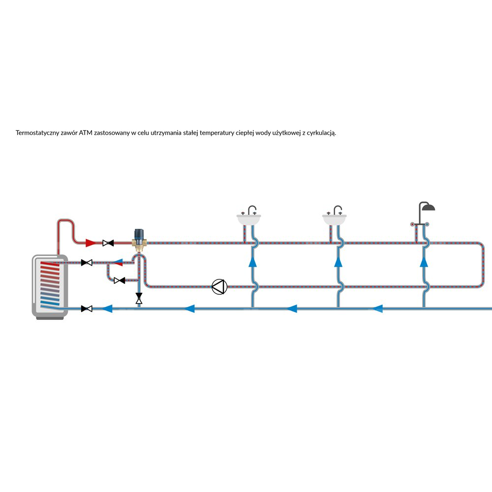 Zawór regulacyjny termostatyczny do wody ciepłej AFRISO ATM 343 mosiądz GZ 3/4'', DN 15, zakres temp. 35-60'C, Kvs 1.6 m3/h, maksymalna temperatura 90'C, maksymane ciśnienie 10 bar