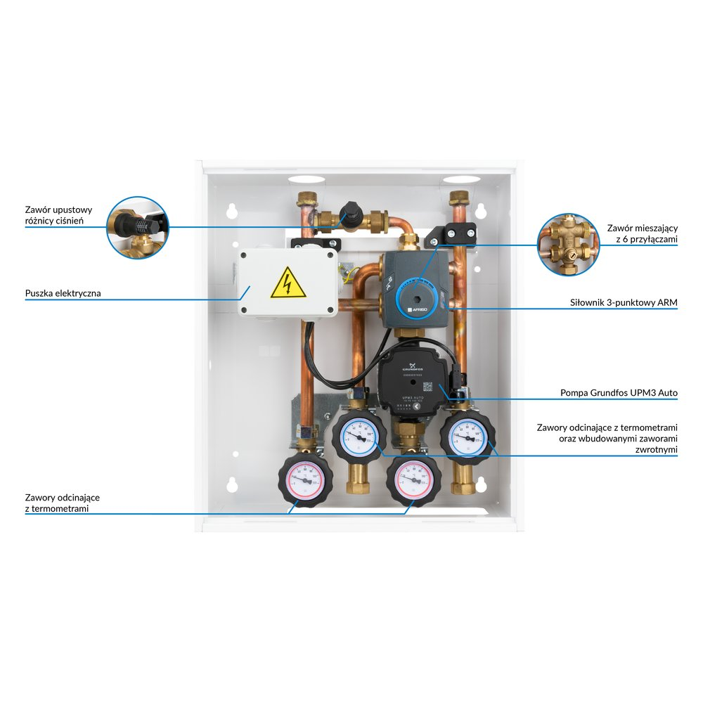 Grupa pompowa AFRISO PrimoBox ACB 910 GZ x GW 3/4'' x 3/4'', z zaworem mieszającym, z siłownikiem arm 141 proclick