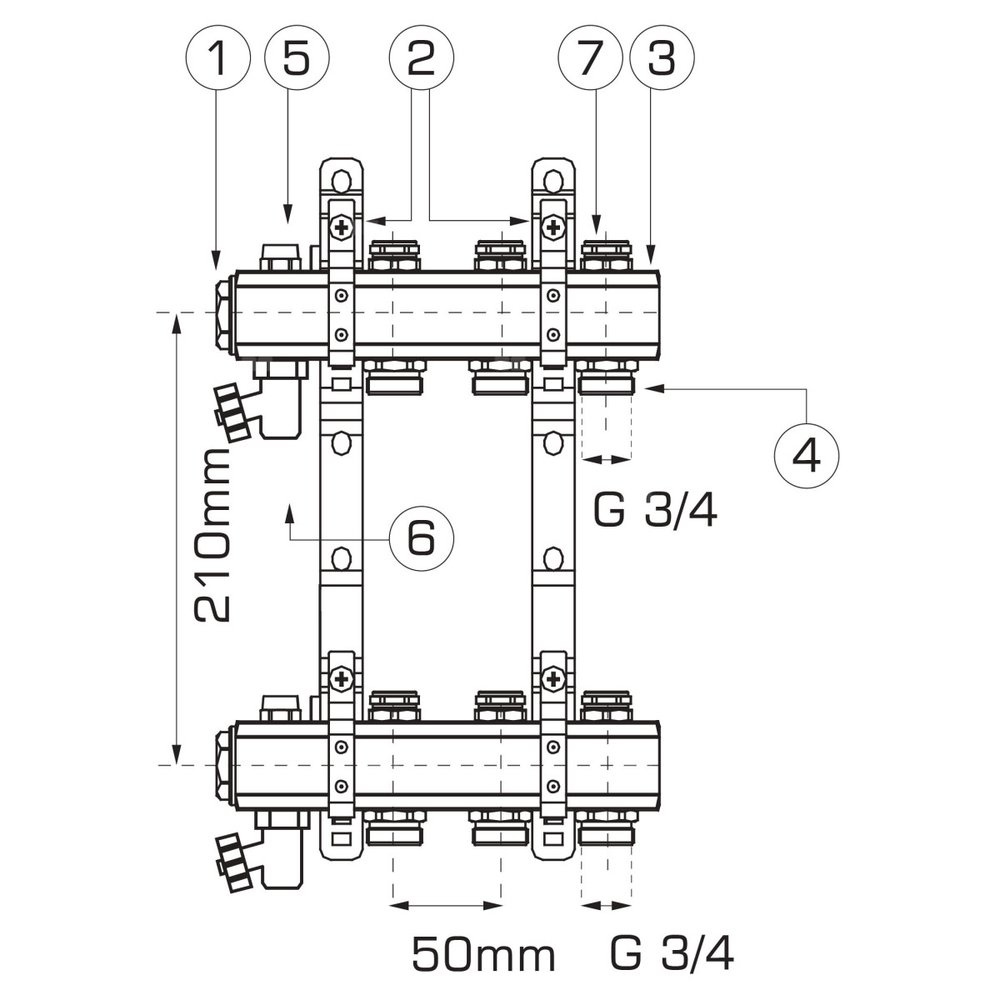 Rozdzielacz do ogrzewania podłogowego FERRO RO09S 9-obieg. mosiądz GW 1'' x GZ 3/4'' + zawór napełn/spust