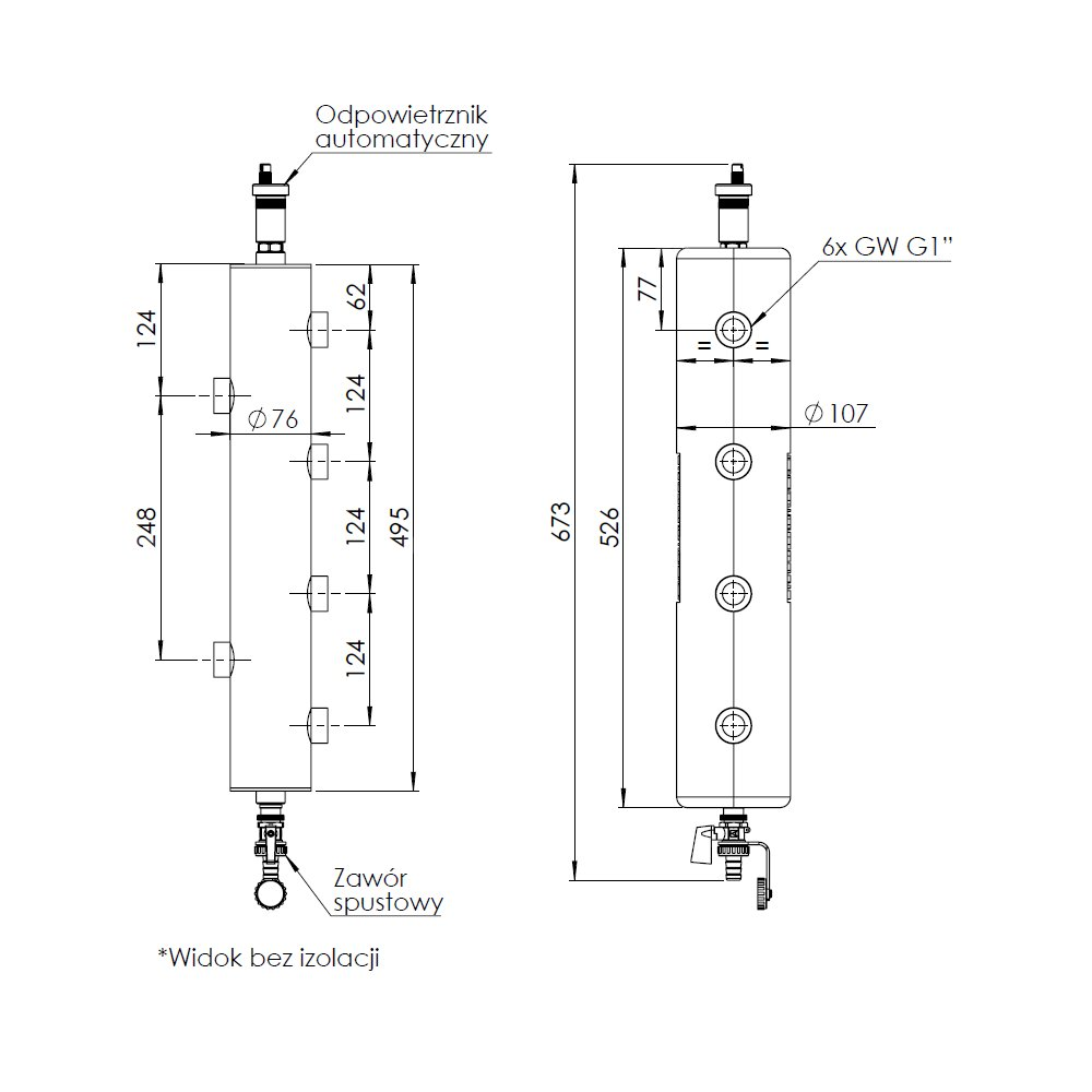 Sprzęgło hydrauliczne ocieplone BLH 850 z rozdzielaczem, 70 kW, 6x GW G1'', 2x GW G1/2'', odpowietrznik automatyczny, zawór spustowy
